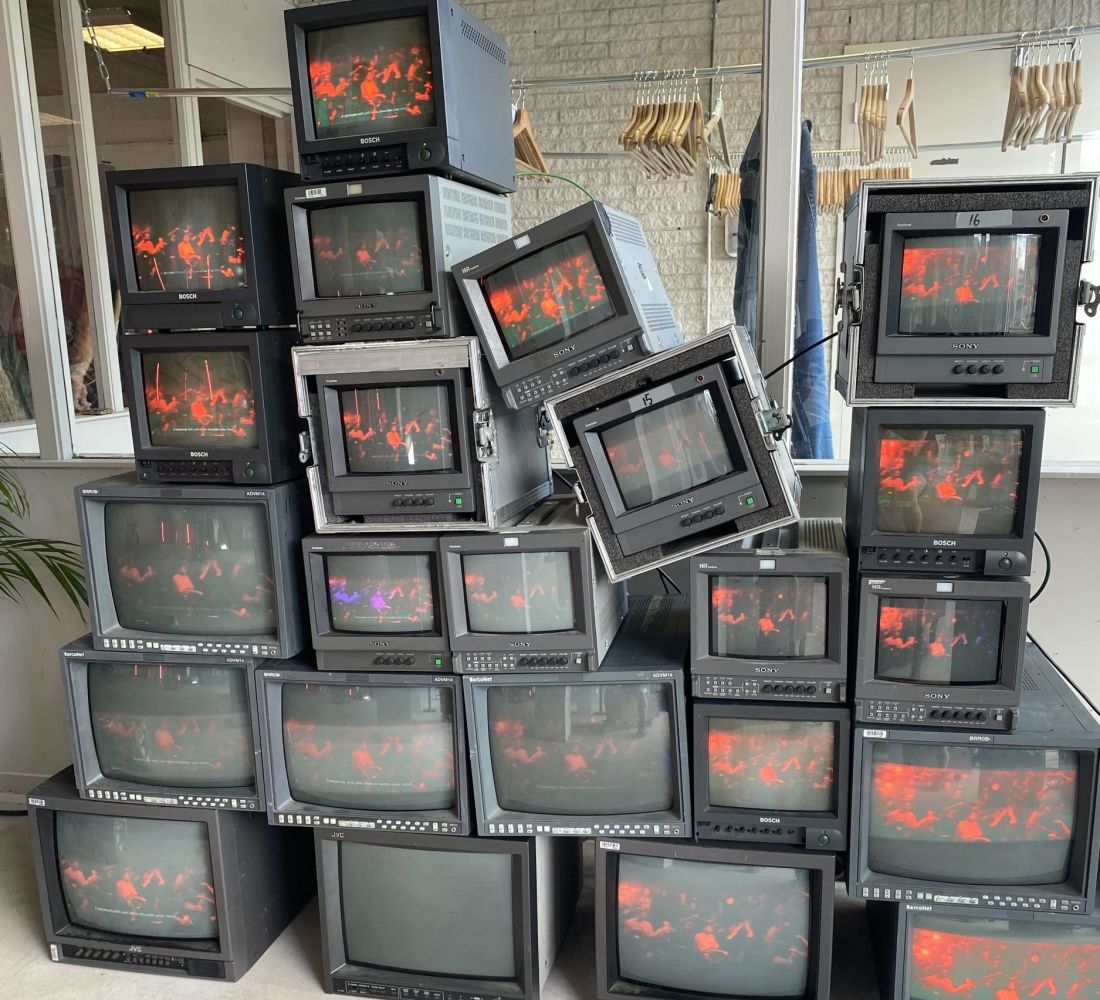 Supa-Dupa heeft een grote verzameling oude beeldbuis televisies beschikbaar om indrukwekkende installaties mee te maken.